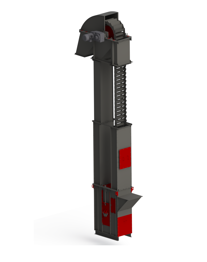 Its principle of operation is based on buckets that scoop up material from the boot's inlet. The material is then transported up the casing to the discharge point at the head section.